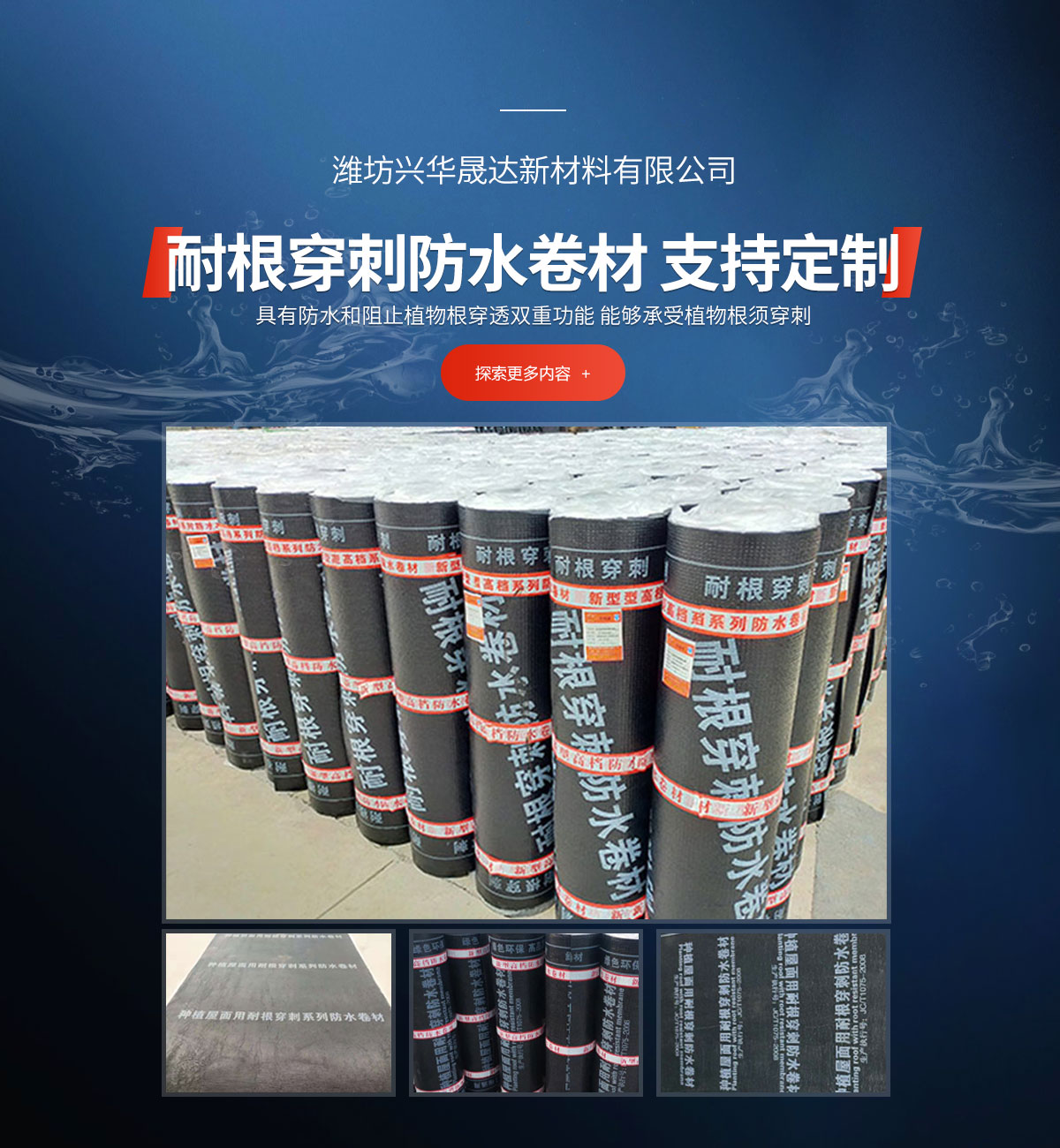 公司的產(chǎn)品有:SBS改性瀝青防水卷材、自粘防水卷材、高分子防水卷材、耐根穿刺防水卷材、防水涂料系列性能優(yōu)良,使用壽命長(zhǎng),產(chǎn)品廣泛應(yīng)用于各類(lèi)民用建筑房屋、地鐵、隧道、蓄水池、游泳池、屋頂、花園、橋梁等多個(gè)領(lǐng)域的防水防滲工程。我們?yōu)槟峁┙鉀Q方案-少花冤枉錢(qián)。